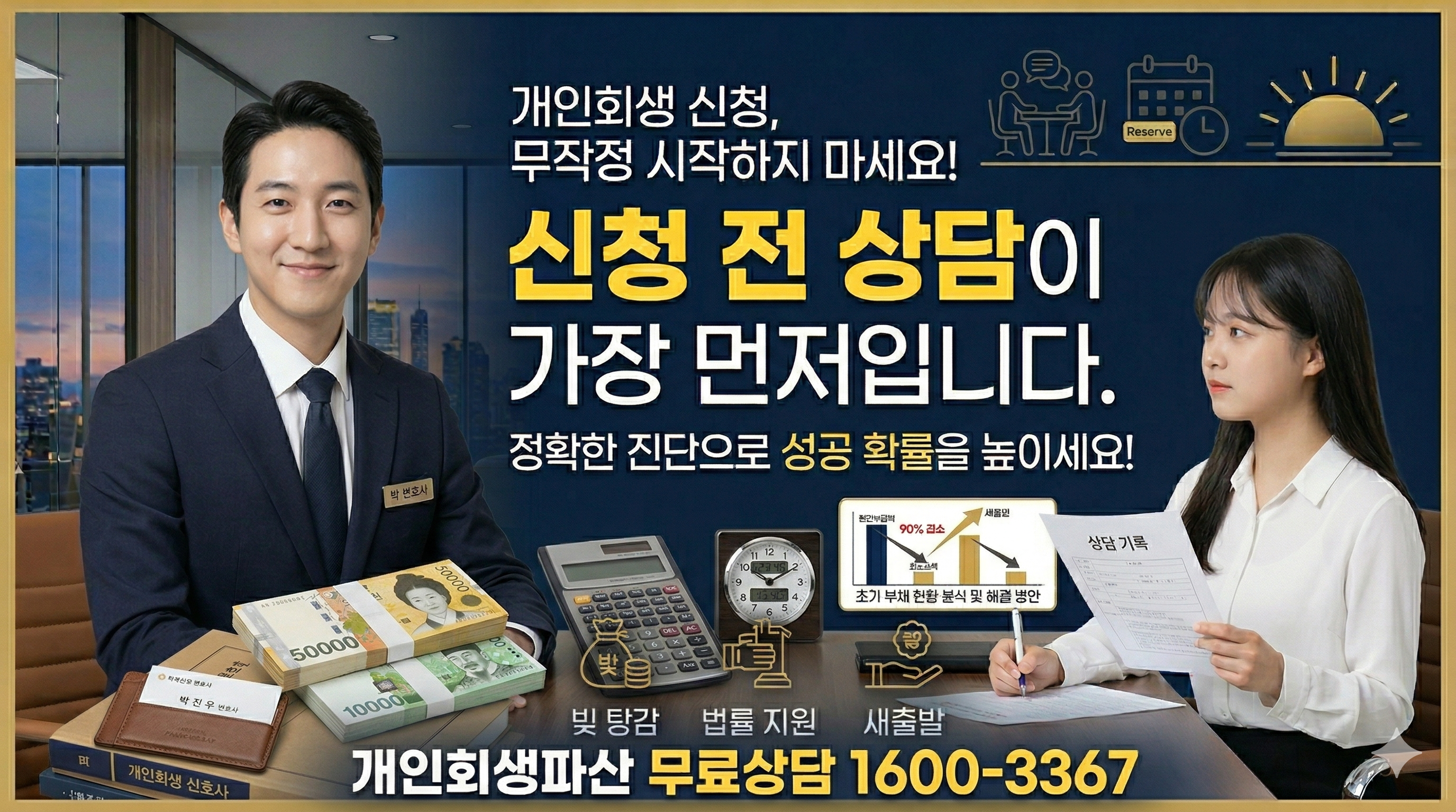 - 빠른 시작은 무료상담 전화 먼저 하는 것입니다. 상담 후 서류 준비해 사무실 방문 하세요. 빠르게 시작 해야 추심도 막고 빚상환 한번이라도 아낄 수 있습니다. 연체 유무 상관 없으니 마음 먹었다면 빠르게 시작 하세요.